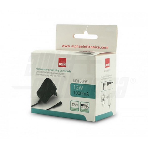 Alimentatore Switching universale 12w 3/4,5/5/6/7,5/9/12 Vdc – 1A – 6 connettori