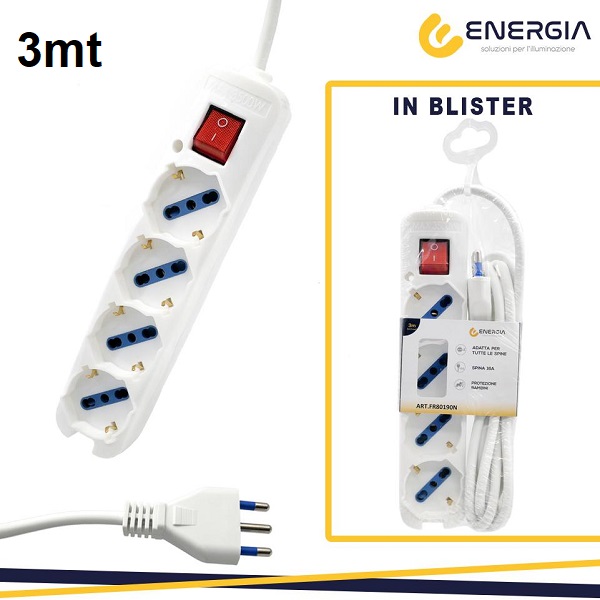 Ciabatta 4 Schuko + Interruttore Bianca CAVO 3mt