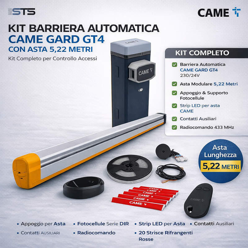 Kit Barriera Automatica CAME GARD GT4 con Asta 5,22 Metri – Completo per Controllo Accessi
