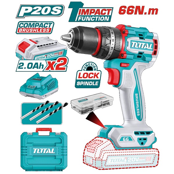 Il trapano avvitatore a percussione da 20 V con una coppia massima di 60 Nm è un dispositivo potente e versatile, ideale per affrontare lavori complessi di foratura e avvitatura. È disponibile in due configurazioni per soddisfare le esigenze di tutti gli utenti, dai professionisti ai fai-da-te: