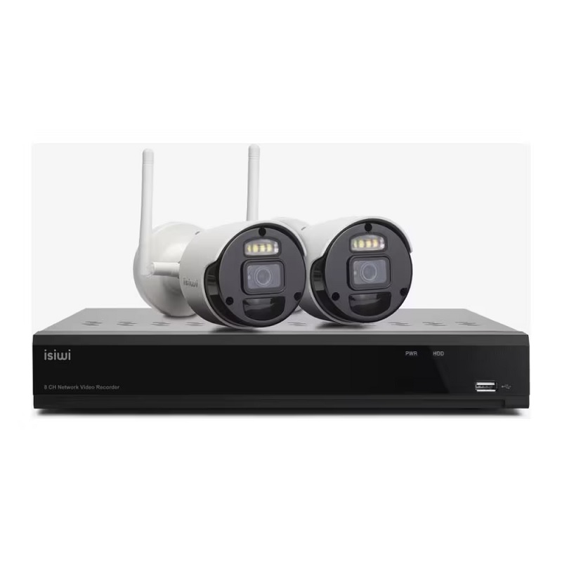 Kit Wireless Isiwi Connect AIR2 ISW-K2N8BFBTA4MP-2 GEN1 NVR 8 Canali 8 Megapixel + 2 Telecamere a batteria da 8700 mAh IP 4Mpx Wireless con funzione PIR Audio bidirezionale