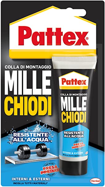 L’adesivo di montaggio della gamma Pattex Millechiodi è ideale per le applicazioni in condizioni estreme: resiste infatti ad acqua, umidità e sbalzi di temperatura. Dotato di una rapida presa per effetto ventosa, Millechiodi Resistente all’acqua è ideale per una varietà di materiali, anche lisci o per i più delicati come gli specchi, grazie alla sua formula a base Flextec™. È adatto quindi per applicazioni sia in interni che esterni, come il fissaggio di cassette della posta e zoccolini in pietra in esterno, o ancora per il montaggio di componenti da bagno, cassette elettriche ed altri oggetti.