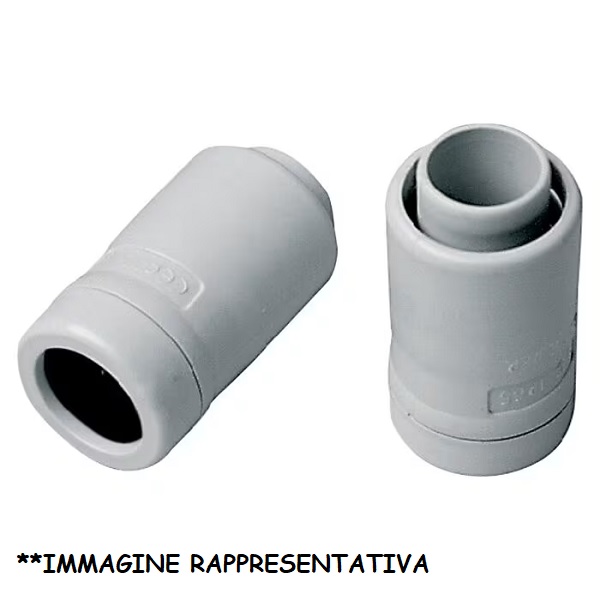 Raccordo stagno per tubo elettrico e guaina, realizzato in tecnopolimero antiurto a base di PVC rigido resistenza al calore anomalo fino a 960°C. Colore grigio RAL 7035.